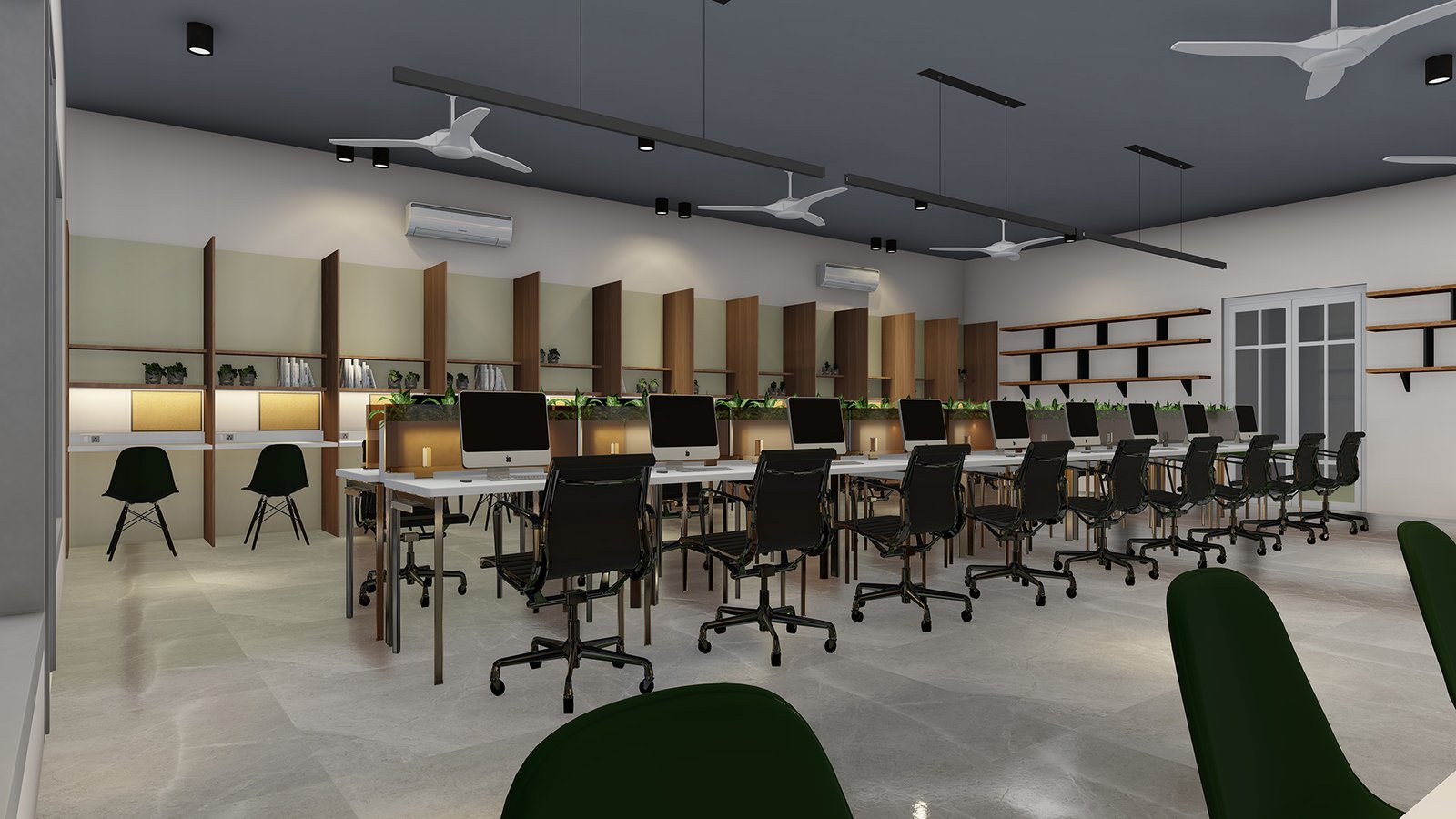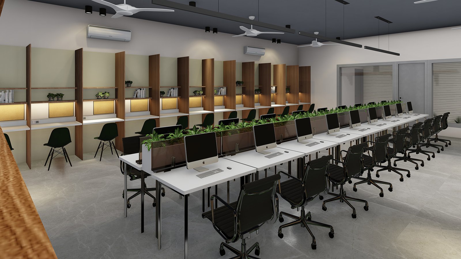 Vastukaar Studio specializes in corporate work areas, co-working spaces, offices, and commercial interiors designed for high performance and visual appeal.