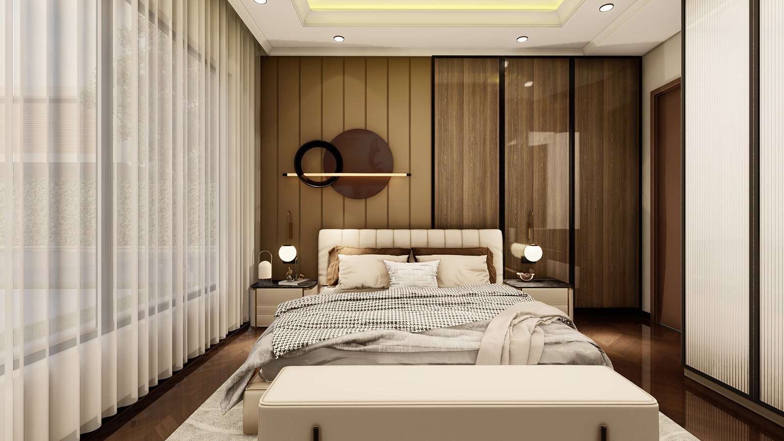A bedroom crafted to feel exclusive, relaxing, and effortlessly sophisticated.